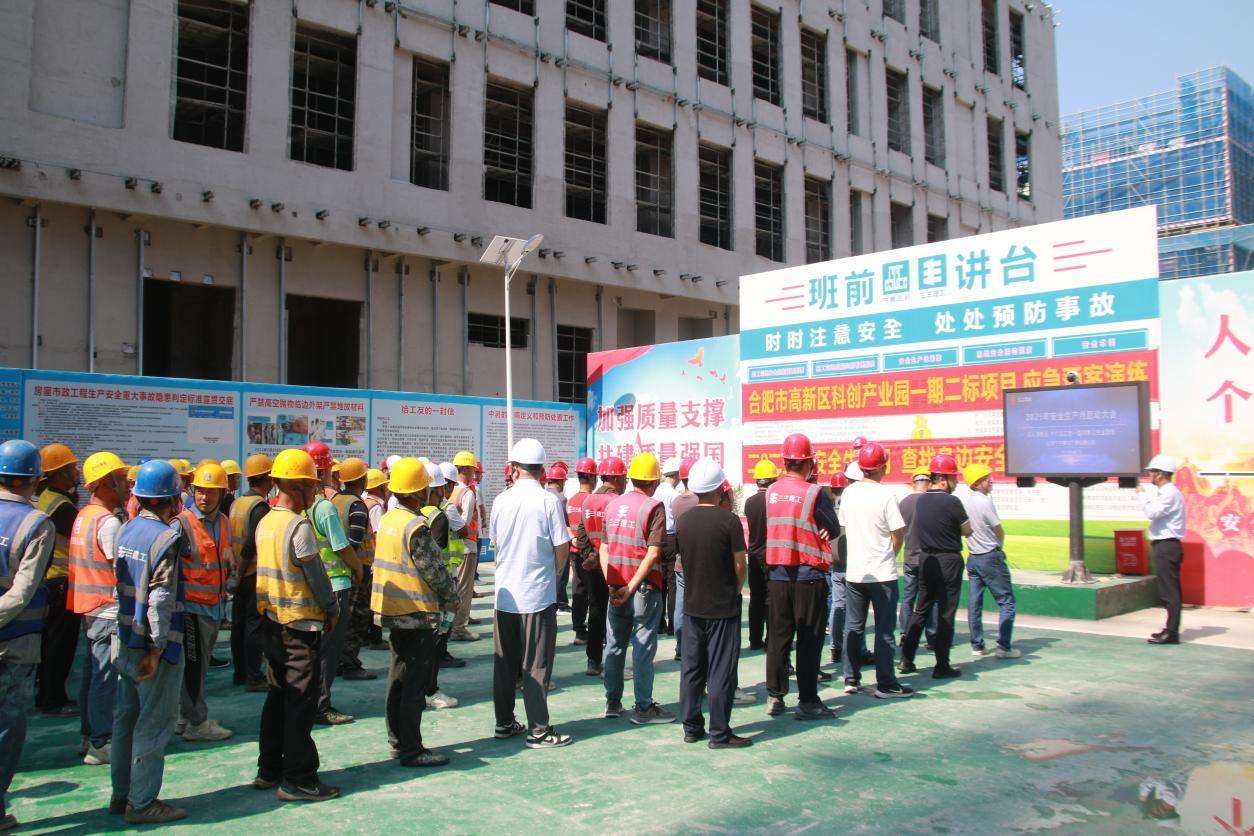 為深入貫徹落實國家2025年“安全生產月”的相關工作要求,強化全員安全意識,提升公司安全管理水平,三三集團以第24個全國“安全生產月”為契機,于2025年6月6日在其承建的合肥高新科創產業園一期二標段工程施工現場舉行了2025年“安全生產月”活動啟動儀式和安全文明標準化工地現場觀摩會議。合肥高新城發集團王光輝主任、合肥康達工程咨詢公司江名權總監、三三集團執行董事、總裁宋曉光、集團常務副總裁、三三建工總經理王利民、集團總工程師閆杰等領導,以及集團各在建項目經理、主要負責人和施工一線人員代表約80余人參加了此次活動。